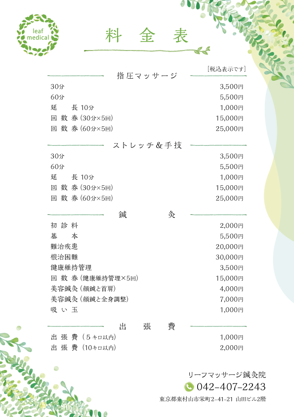 開始日時、週の施術回数など利用者様のご希望に沿って施術を開始いたします。一回一回心を込めて施術を行います。